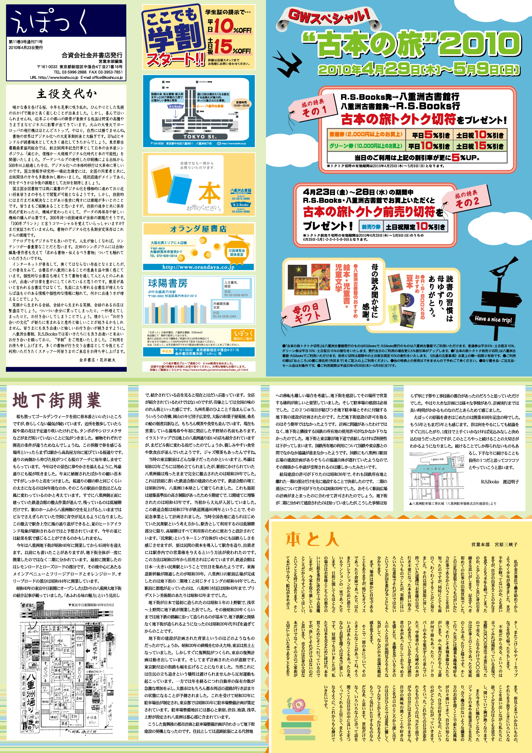 えぽっくbV1 2010.4.23発行 <えぽっくリストへ戻る> <スタッフからの情報>八重洲古書館・R.S.Booksのブログ